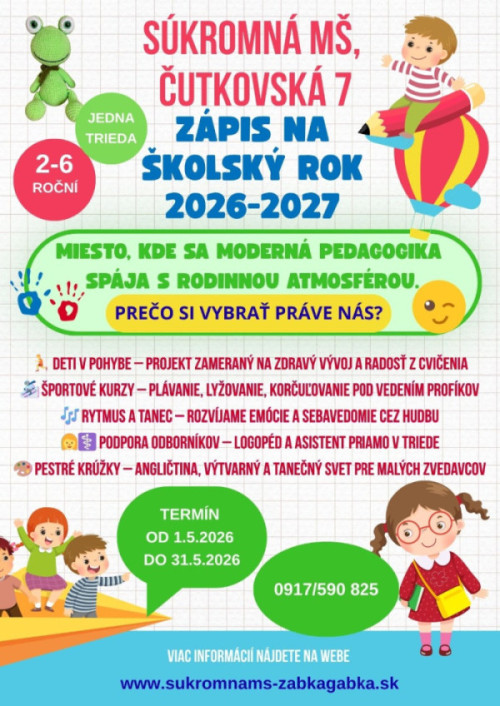 Ponúkame kvalitný výchovno-vzdelávací program pre predprimárne vzdelávanie pod názvom "Učíme sa hrou so žabkou Gabkou". Viac informácií nájdete v priloženom škoslkom vzdelávacom programe. ŠkVP pre predprimárne vzdelávanie. Učíme sa hrou so žabkou Gabkou. - skrátená verzia (3).pdf (1089489)